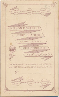 If the date shown on the reverse of this carte de visite is correct it would have been taken during Cherrill's first year in Christchurch.