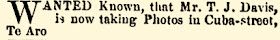 Photography.— We notice that Mr G. H. Daley has prolonged his stay in Wanganui for a limited time, previous to a tour of New Zealand for a collection of views. We have been shown a quantity of portraits of the townspeople, taken in a style worthy of the best Melbourne artistes, and indeed those anxious to have their faces and forms perpetuated should lose no time in visiting the studio.